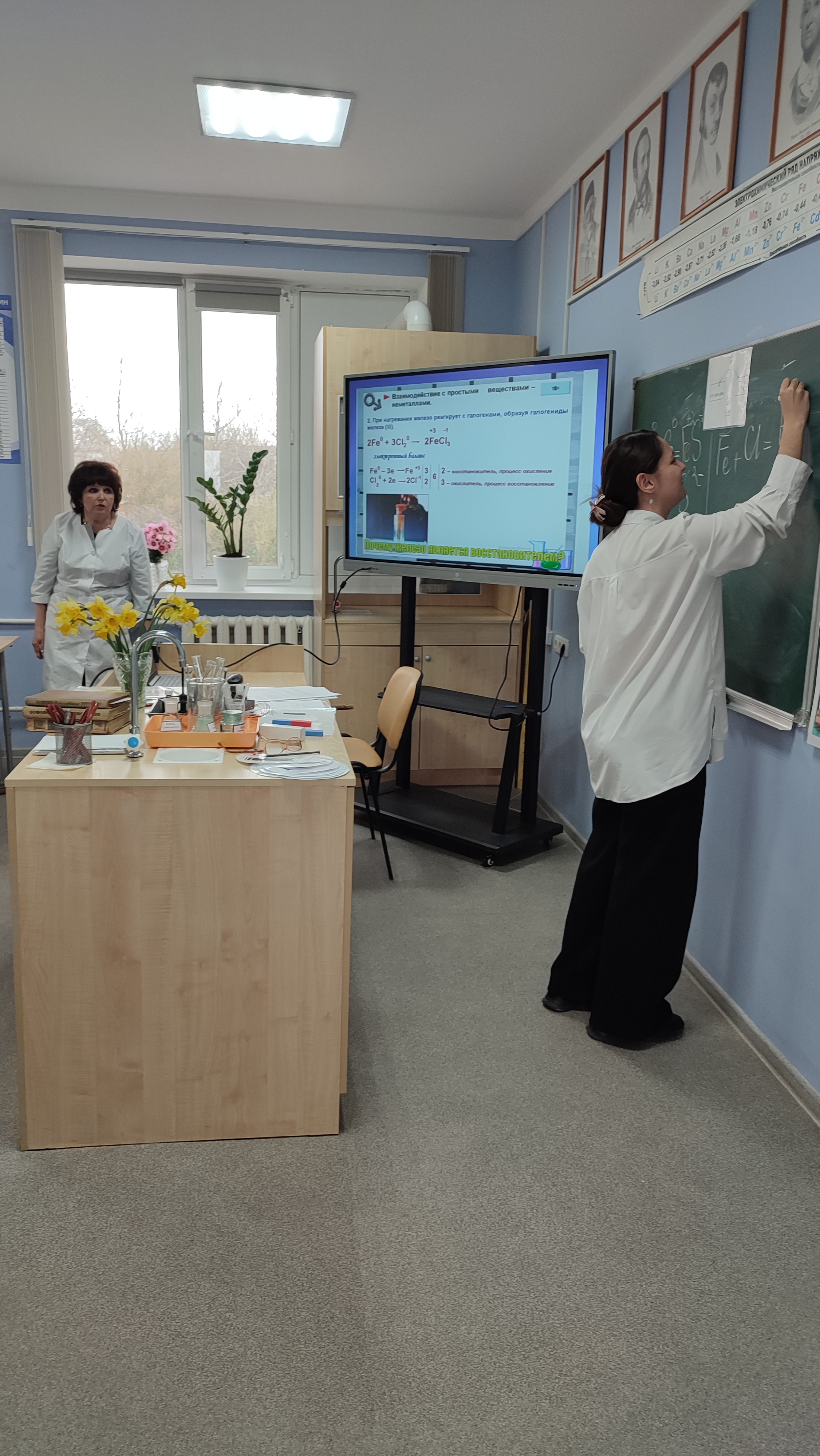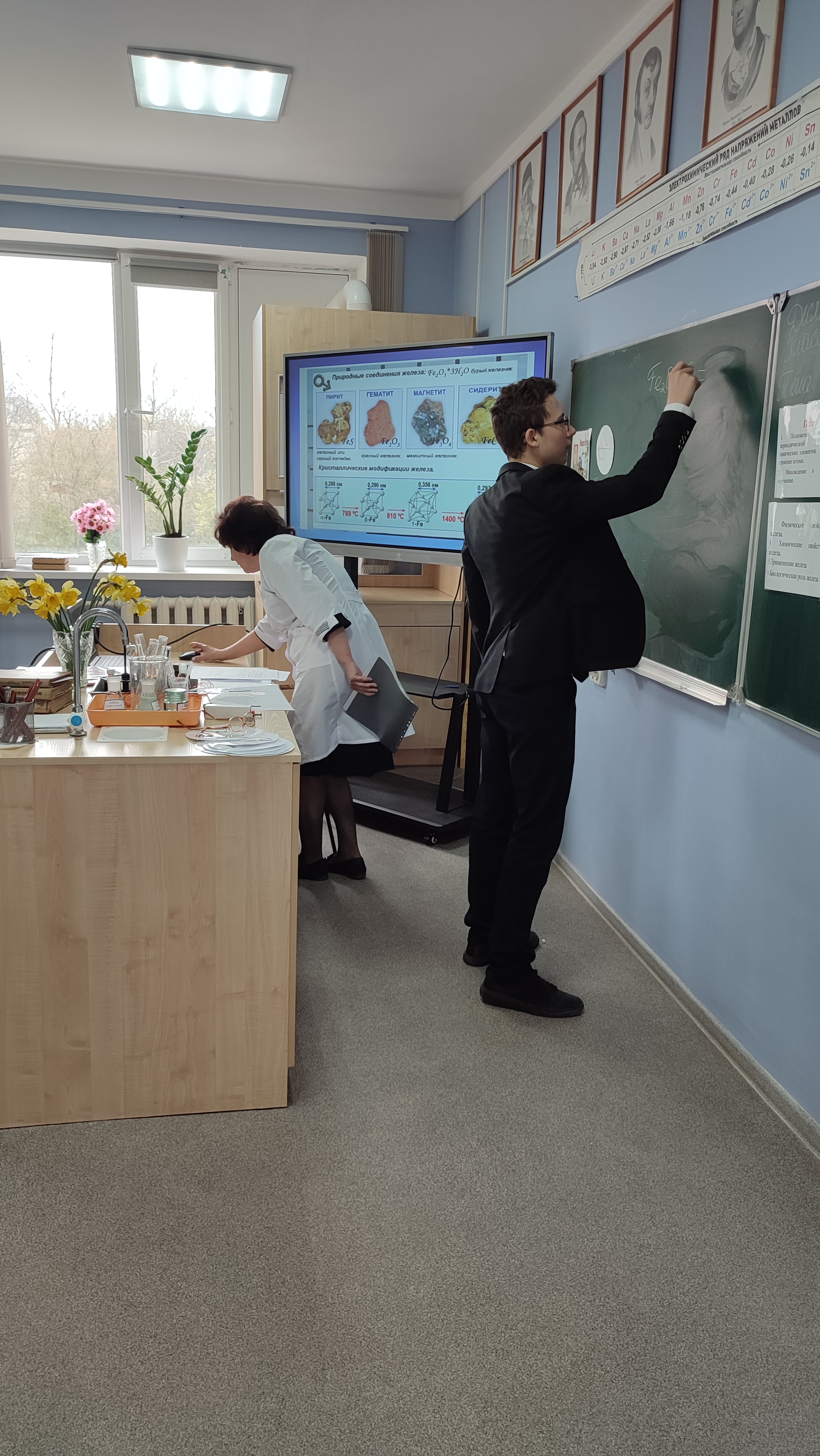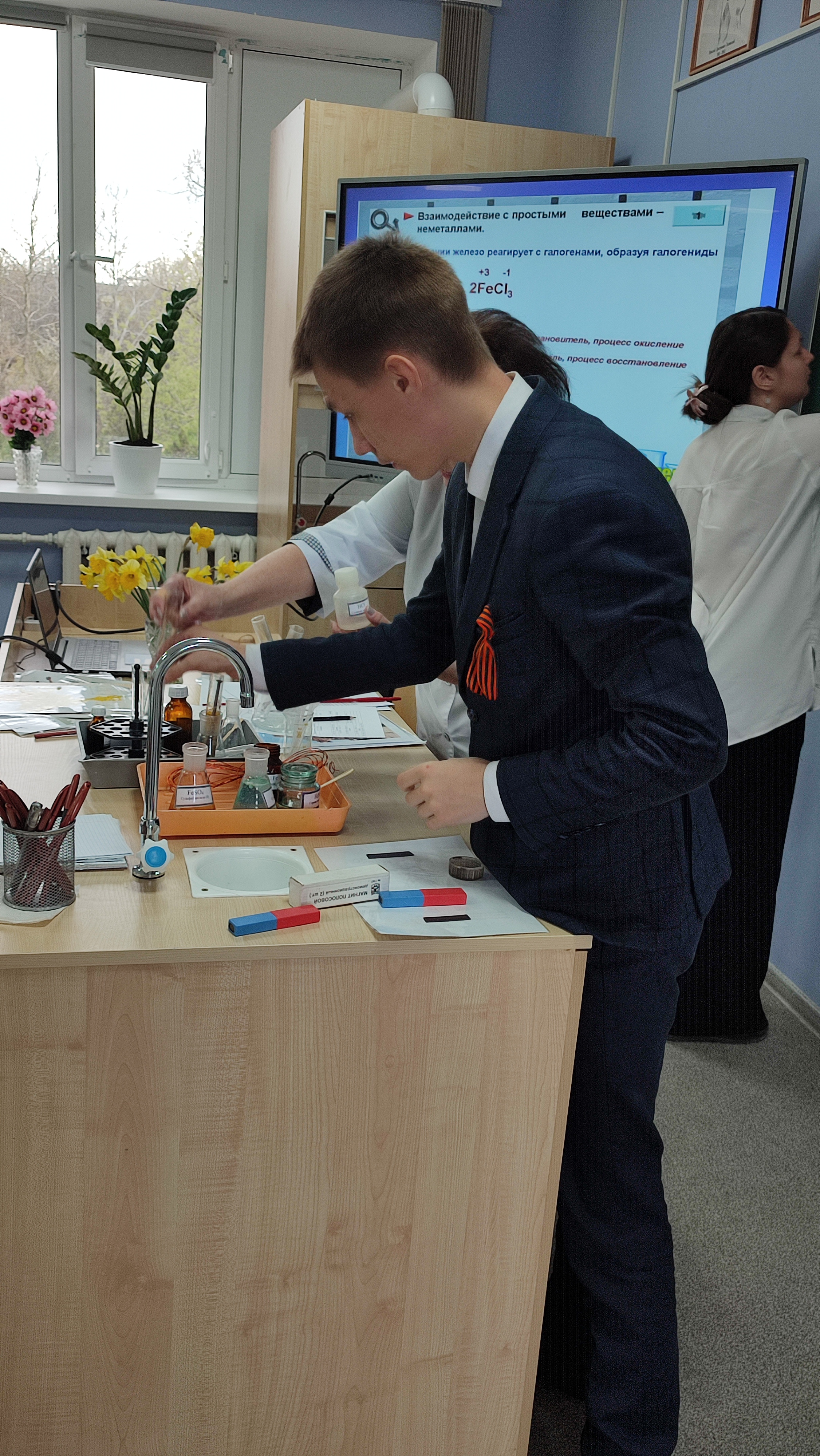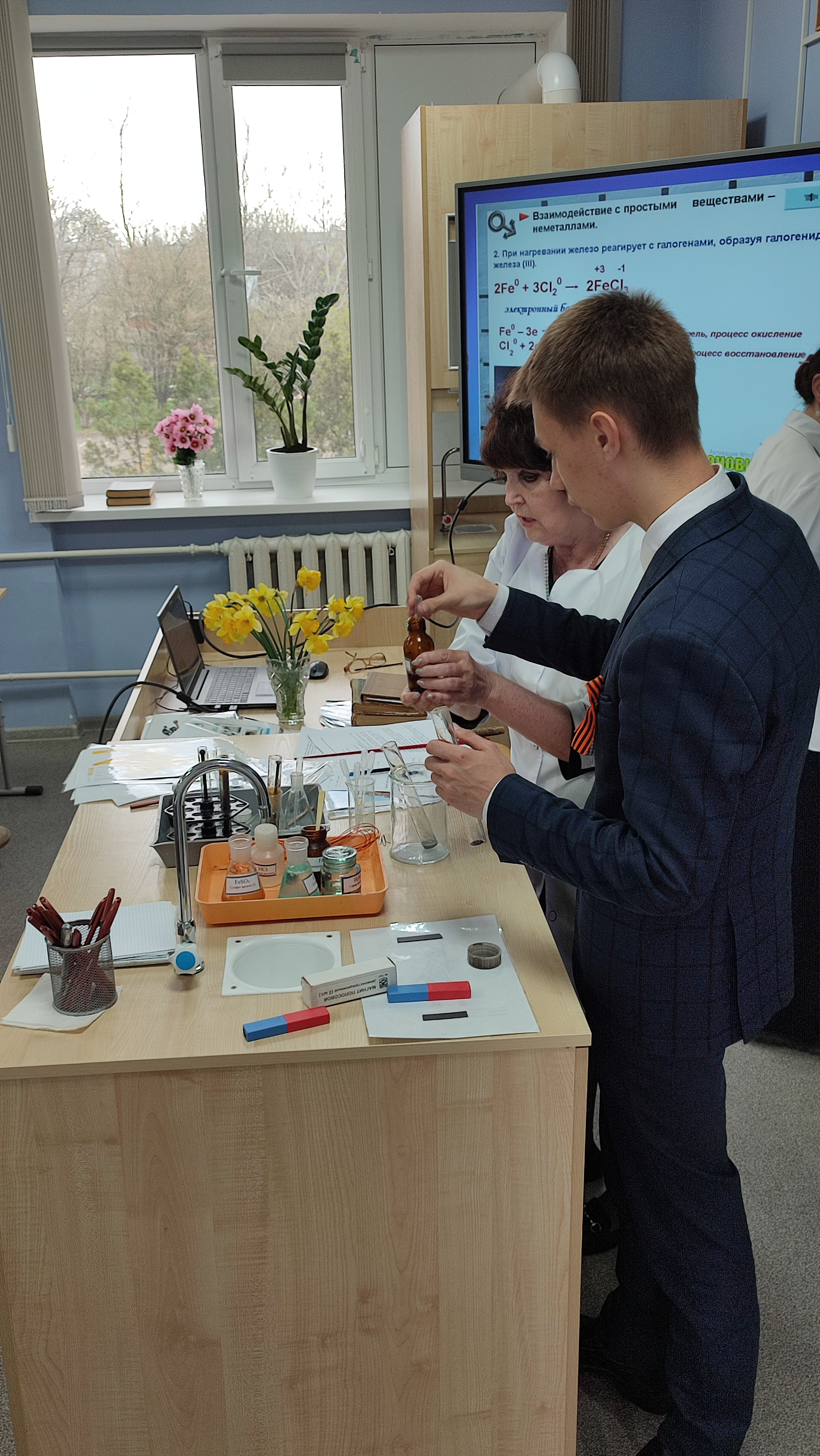 Активное участи в проведении урока проявили следующие учащиеся: Трусов Георгий, Кибирева Елизавета, Коровашкина Р., Столяров Иван, Тайзетдинов Вячеслав, Тайзетдинов Максим, Коротаев Александ, которые рассказали о способах получения и применения железа, биологической роли железа для человека и растений.