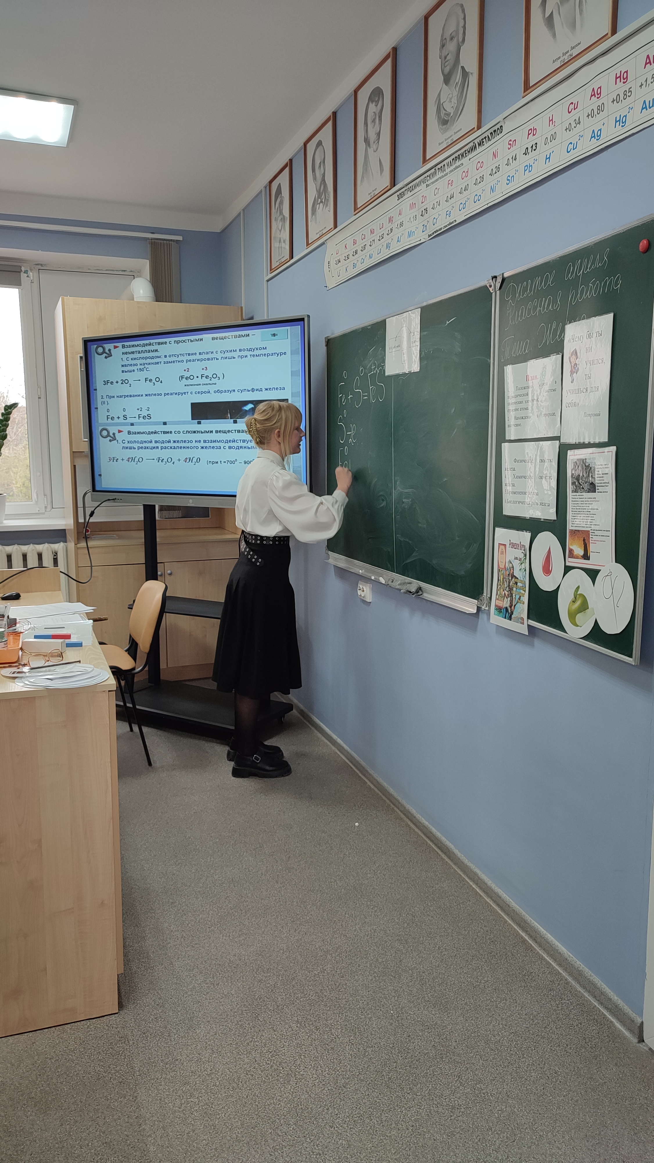 Также учащиеся составляли уравнения реакций, решали тесты и задачи связанные с железом, проводили опыты связанные с химическими свойствами железа. Приводили интересные факты из художественной и научной литератур, в которых описывается металл Железо.