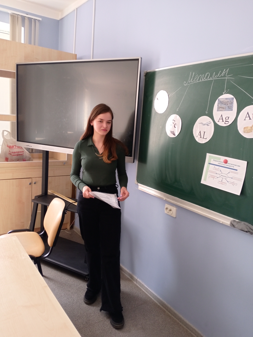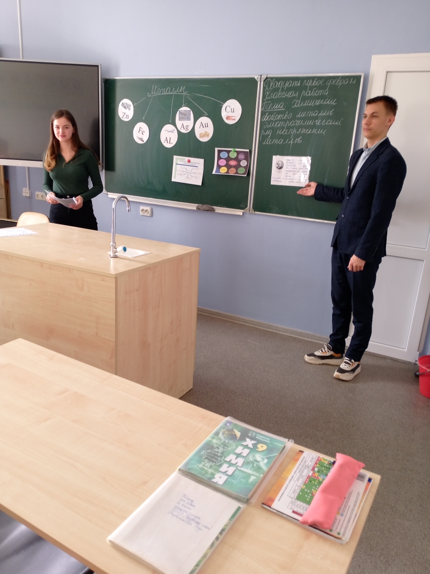 В рамках проведения конкурса «Учитель, которого ждут» на базе МБОУ «Трудовская школа» в кабинете химии (Центр «Точка Роста») студентка КИПУ Гулина Мария Сергеевна провела открытый урок в 9 классе по теме: «Химические свойства металлов. Электрохимический ряд напряжения металлов».