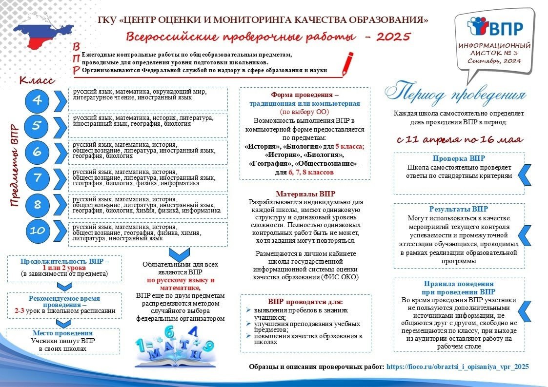 - сокращены сроки проведения ВПР: в 2025 году они пройдут с 11 апреля по 16 мая;